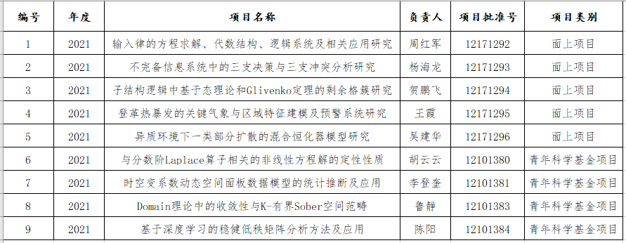 国家自然科学基金项目-2021年