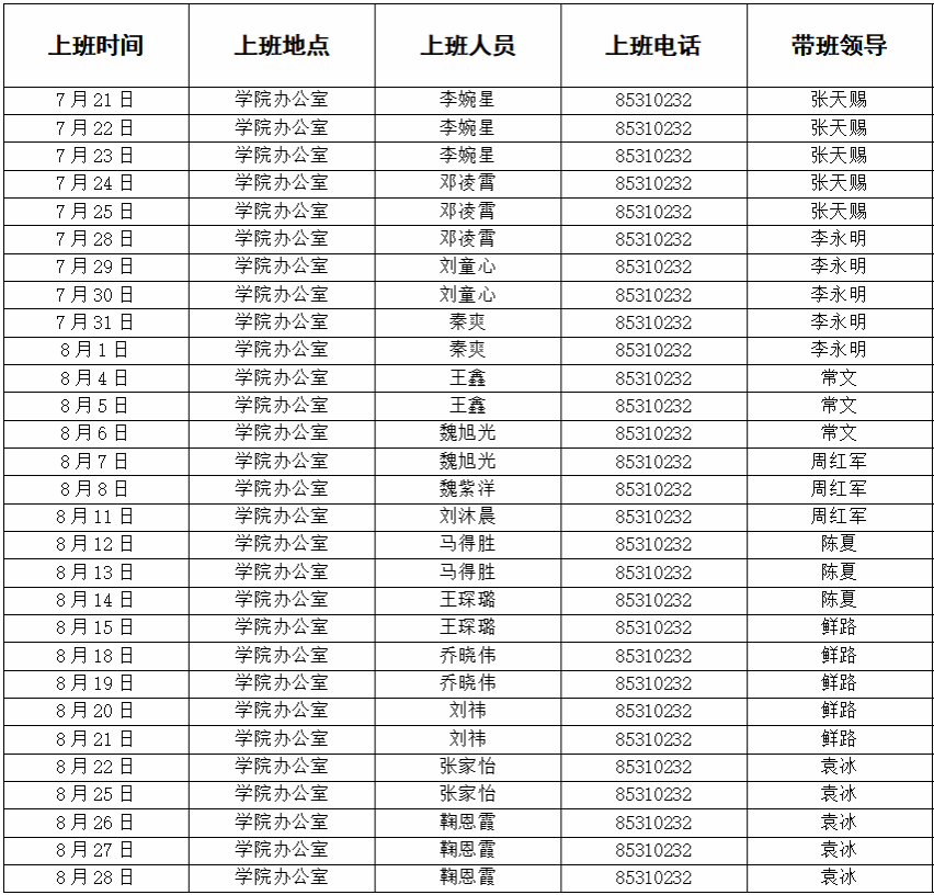 注意事项:1、按时上下班,电话及时接听;2、每日清洁办公场所;3、注意安全和防火,每天定时巡查公司办公场所;4、做好假期信件报纸的收发工作,每周一、周四取信件报纸;5、每周三、周五给办公室、学工组等所有绿植浇水各一次;6、值班结束时须做好值班期间工作登记;7、遇紧急突发情况,及时向相关领导汇报。