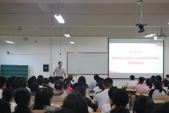 随后,2024级新生代表盛宏,他满怀激情地表达了自己对数学专业的热爱和对未来研究生生活的憧憬。他呼吁全体新生在努力提升专业能力的同时,更要注重自我修养和品德锤炼,培养强烈的责任心和使命感,为成为一名优秀的科研工作者而不懈奋斗。
