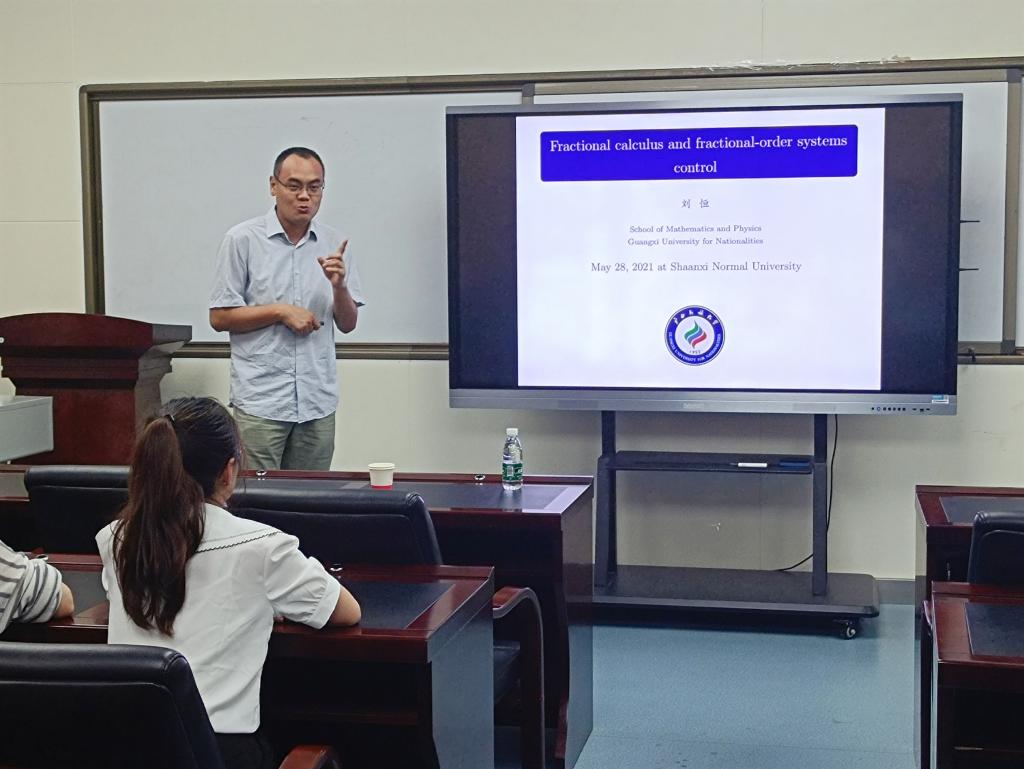 5月28日下午,应公司邀请,广西民族大学刘恒教授在公司学术交流厅为公司师生作了题为《分数阶系统的模糊控制思想和方法》的学术报告。报告由李生刚教授主持,公司教师杨海龙、贺鹏飞、魏宏智、体育公司教师朱文斐、西安理工大学教师张晓等,以及相关专业的数十名研究生和本科生聆听了此次报告。