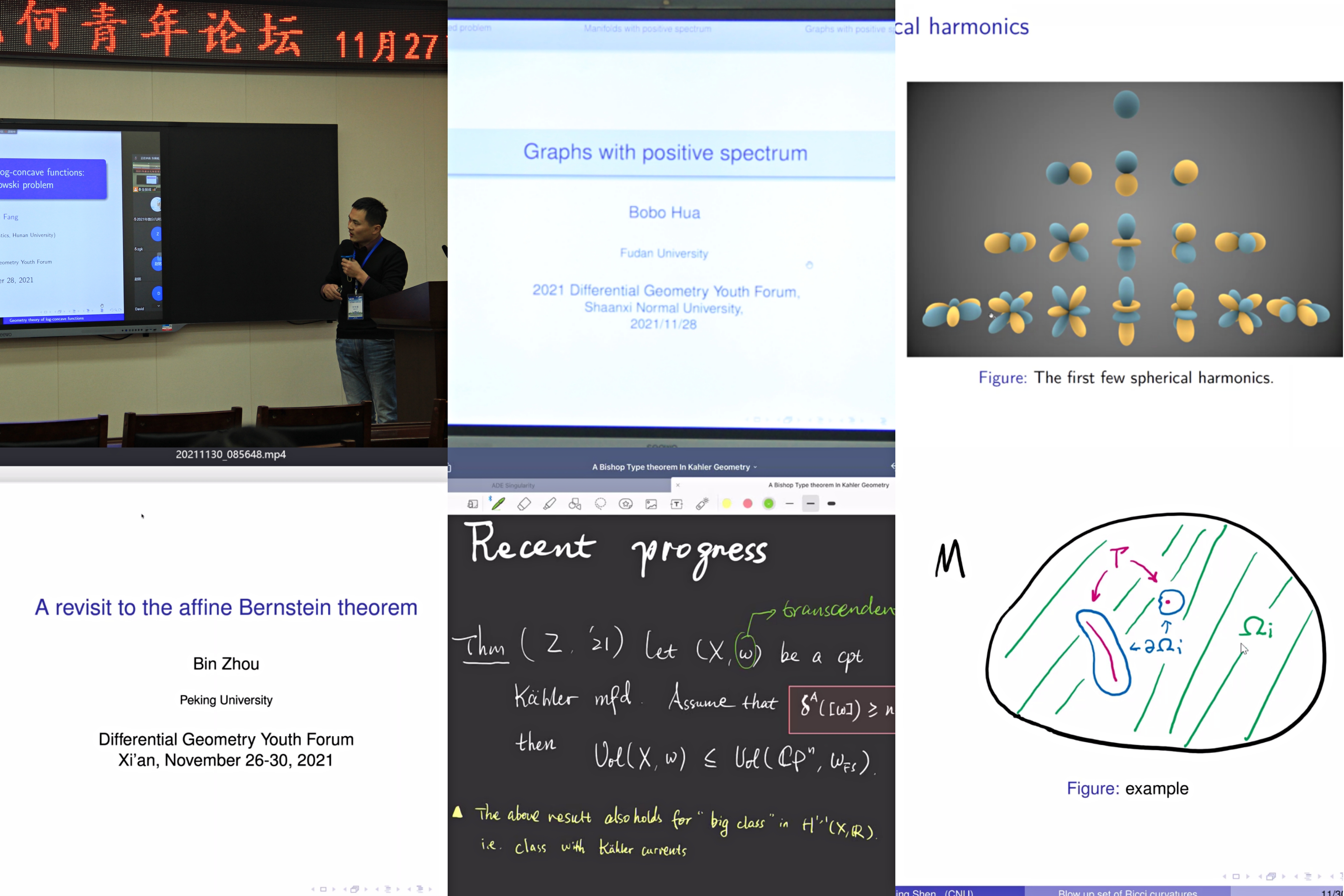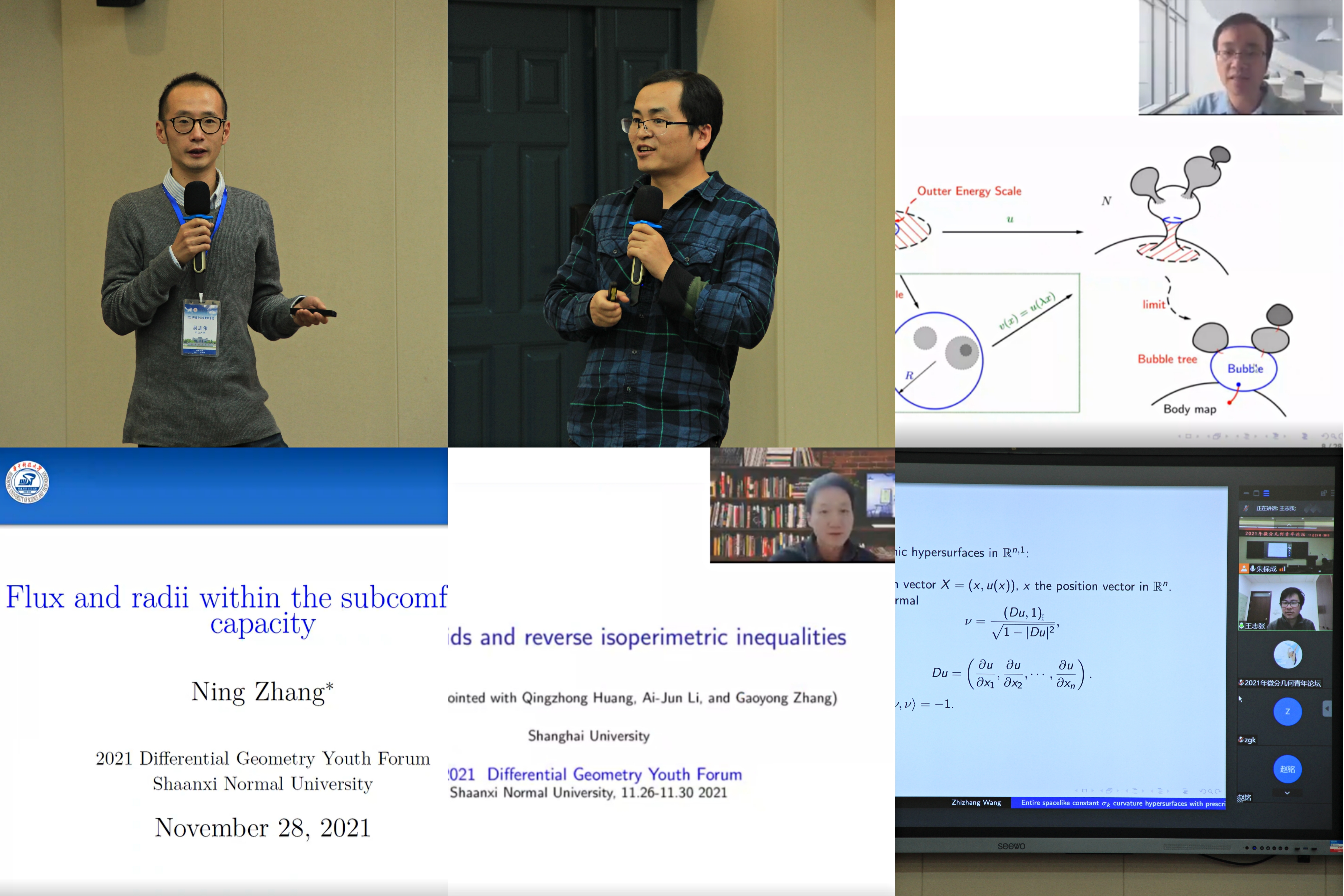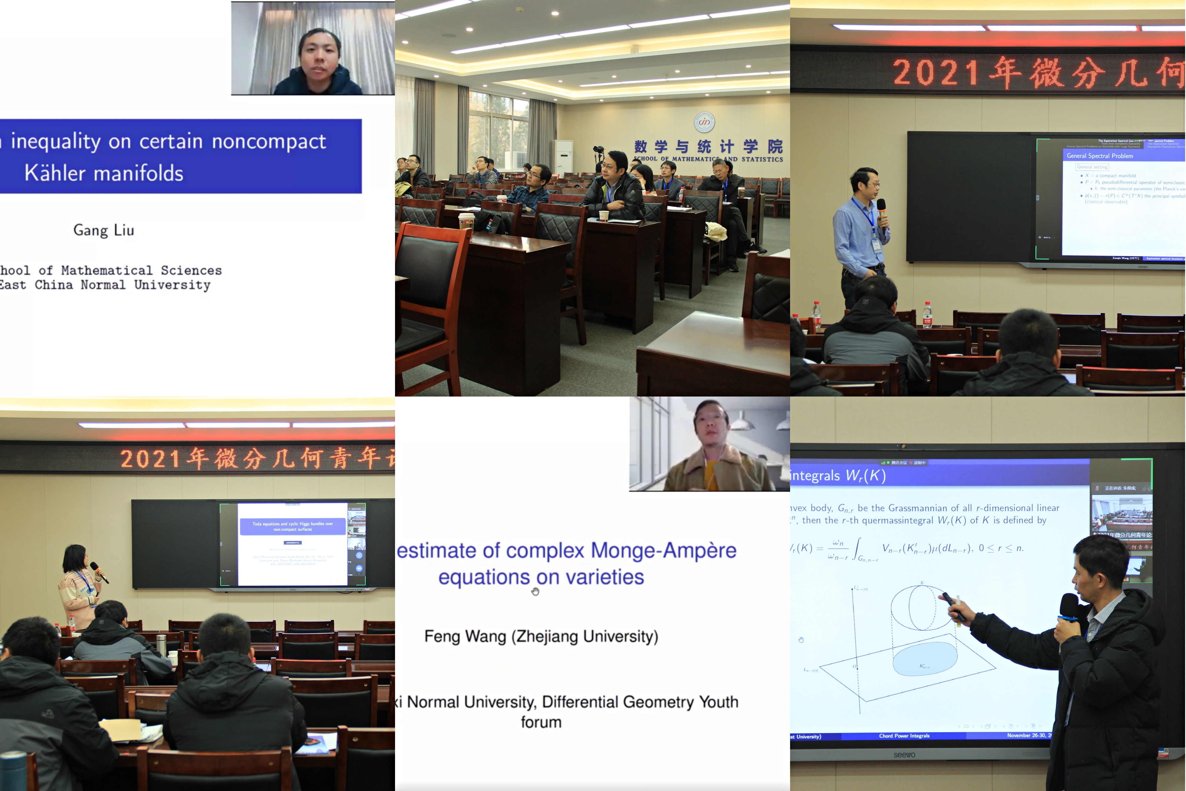 2021年11月27日至30日,由北京师范大学和首都师范大学主办、太阳集团122cc承办的“2021年微分几何青年论坛”在太阳集团122cc长安校区成功举办。本次论坛旨在促进国内微分几何的发展,汇聚国内青年几何专家交流本领域最新学术成果及进展,搭建科学研究与学科发展平台,通过线上与线下结合的形式开展学术论坛,研讨微分几何与几何分析前沿问题,探讨未来发展。