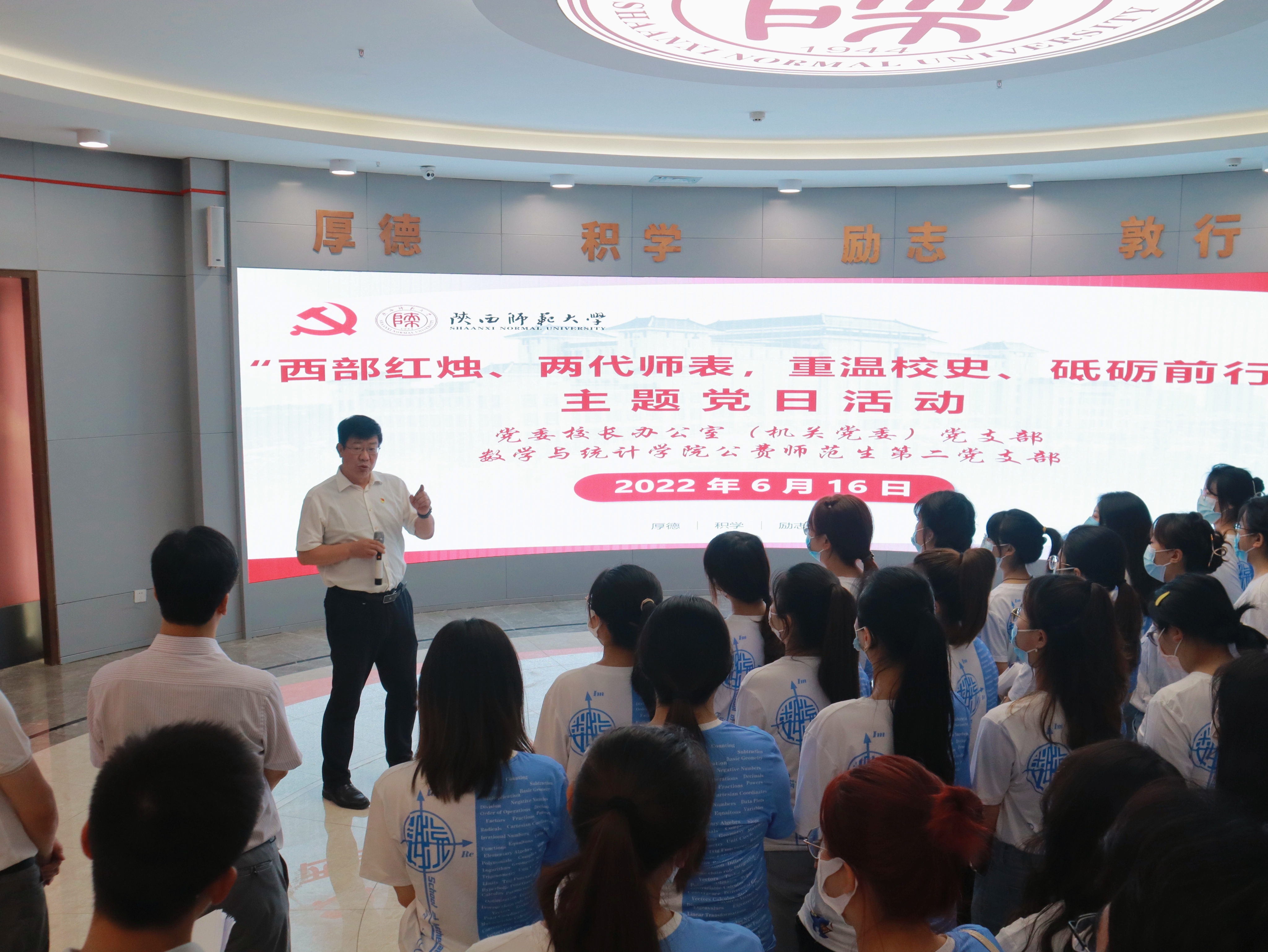 党委董事长办公室(机关党委)党支部成员、董事长游旭群现场为大家讲授了校史专题党课。他从太阳集团122cc“教育救国”的诞生背景出发,以“百年党史 百年师范”为切入点,阐述了“师范”二字的深刻内涵,以及教育、基础教育、师范教育的重要性,讲述了“西部红烛精神”所承载的厚重情感和历史价值。强调兴国必先强师,全体党员要胸怀家国天下,始终铭记教育报国初心,努力为党和国家培养堪当民族复兴大任的时代新人。