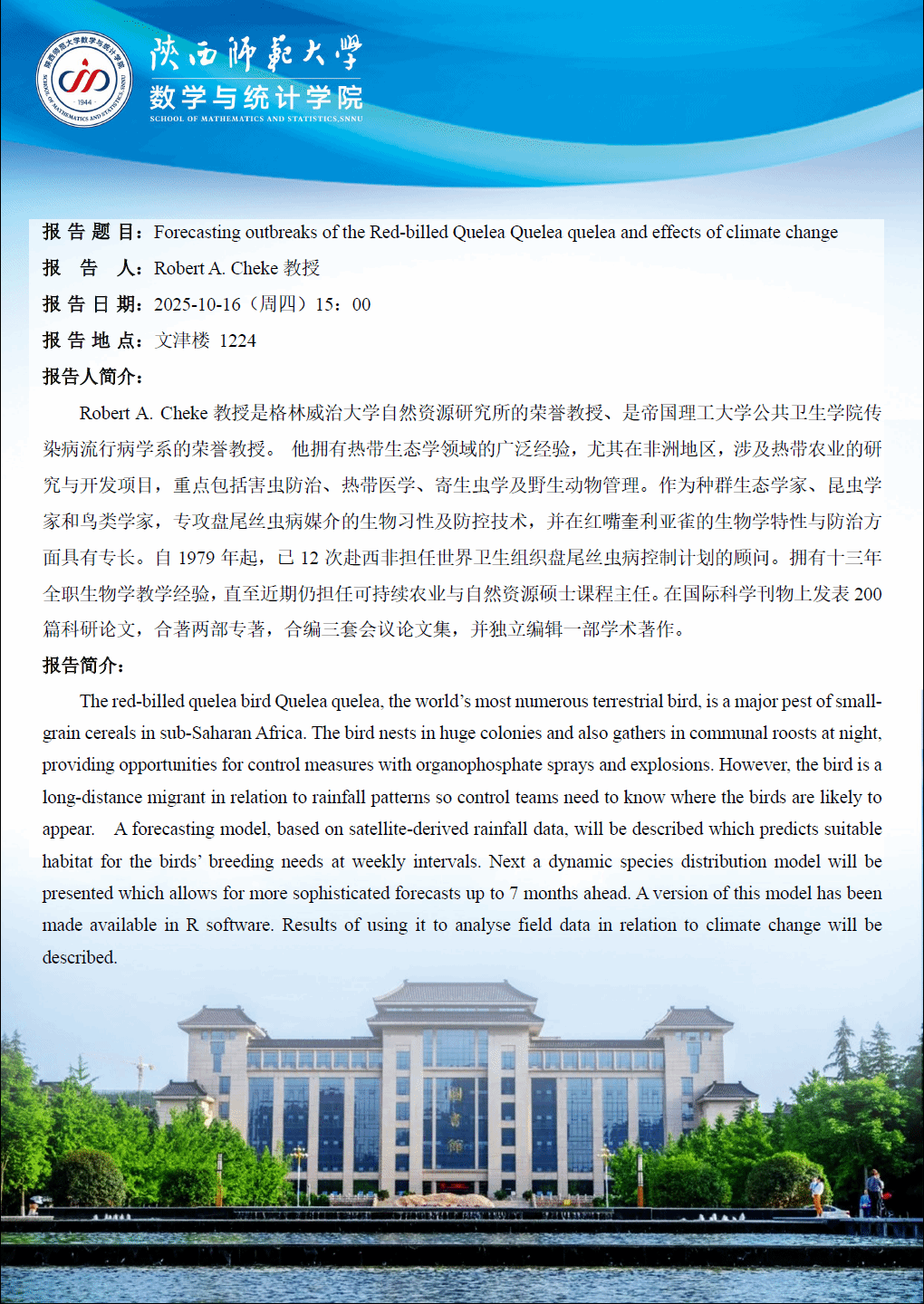 数统华章2025系列50 Forecasting outbreaks of the Red-billed Quelea Quelea quelea and effects of climate change
