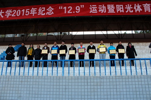 12月16日,公司2015年阳光体育冬季长跑启动仪式暨纪念“12.9”运动马拉松长跑接力赛在公司长安校区田径场正式拉开帷幕。公司运动员们奋力拼搏,全力以赴,喜获第三名的骄人成绩。公司分党委副书记崔创、团委书记邹尚田、2014级辅导员鞠恩霞到现场观看比赛并为运动员们加油助威。