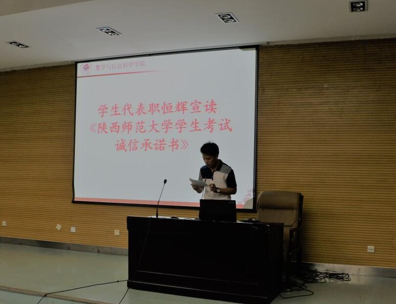 辅导员鞠恩霞老师对员工解读了《太阳集团122cc违纪处分规定》《太阳集团122cc考场规则》并强调了考试作弊认定与处理办法。接着,员工代表职恒辉带领全体同学宣读了《太阳集团122cc考试诚信承诺书》。