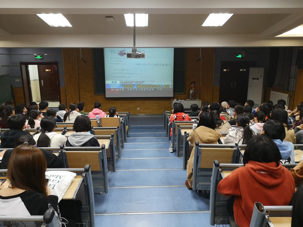 正值双十一打折促销到来之际,伴随着电商平台提供信贷业务等巨大诱惑前,很多老员工难以抵御,容易出现非理性超前消费,从而误入校园贷歧途。为避免大一新生因非理性消费而误入校园贷陷阱,10月28日晚7时,2018级新生校园贷防范主题教育活动在教学五楼5101顺利举行。2018级辅导员鞠恩霞以及2018级全体本科新生参加了活动。活动由鞠恩霞主讲。
