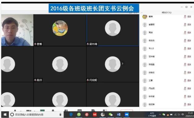 迎春三月,数学与信息科学公司的毕业班学子应埋头在图书馆进行论文写作,活跃在各个招聘宣讲会为自己找寻出路。新冠肺炎疫情对毕业班的就业和论文的撰写工作均产生了较大冲击。2016级学子们在家中如坐针毡,考研成绩的公布更是给同学们的心理带来了不小的躁动。为了稳定员工们的焦躁情绪,全身心的投入到新学期的教学节奏中去。数科院2016级本科生辅导员张伟超老师在2月24日召开了2016级班长团支书“云例会”,经过班干部前期的调查和同学们普遍的反应。确定了2016级各班级“云班会”的主题分别是:如何快速高校的撰写本科生毕业论文、考研员工复试及调剂指导与疫情期间未就业员工如何实现云就业。
