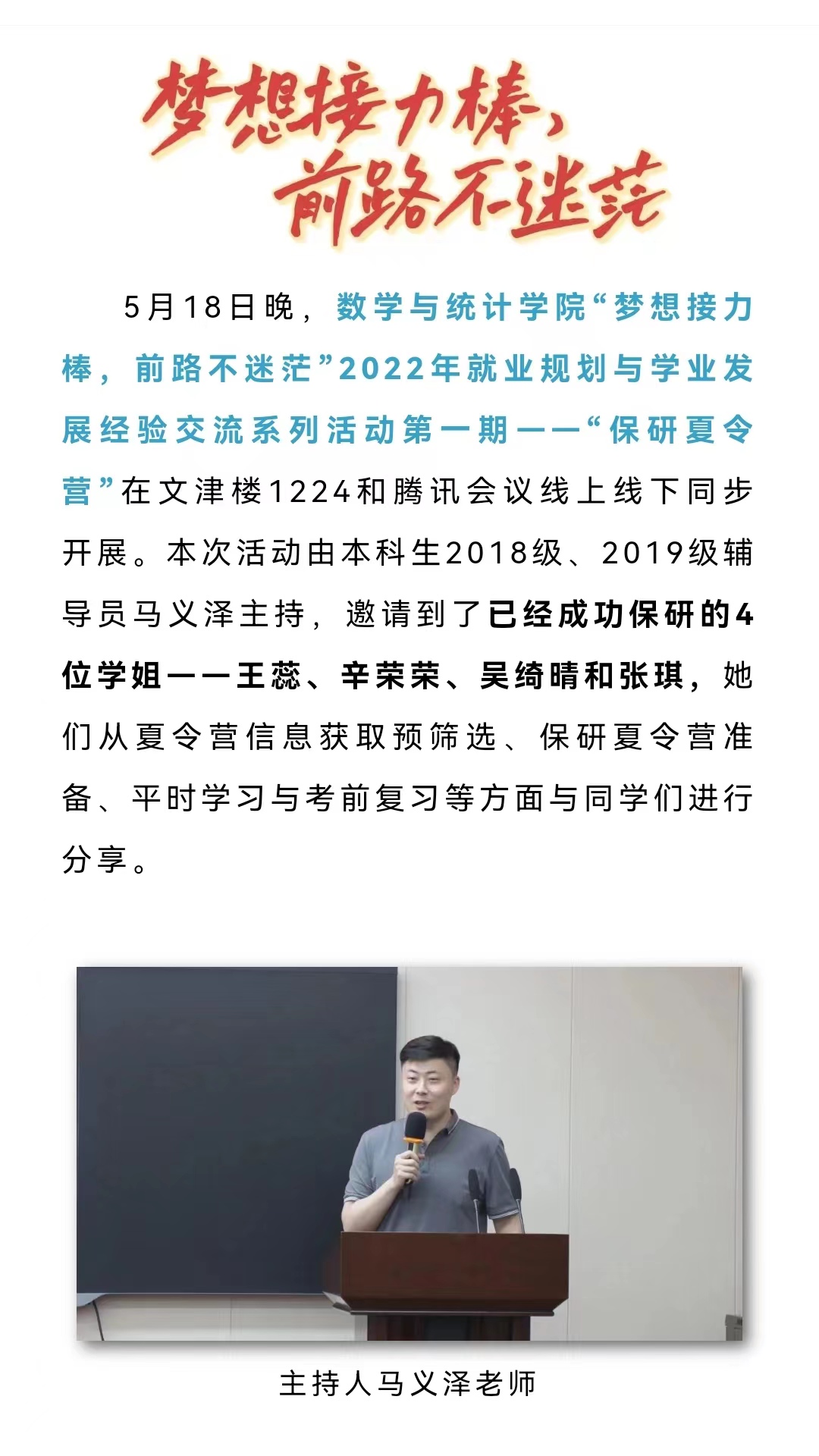 “梦想接力棒,前路不迷茫”之“保研夏令营”顺利举行