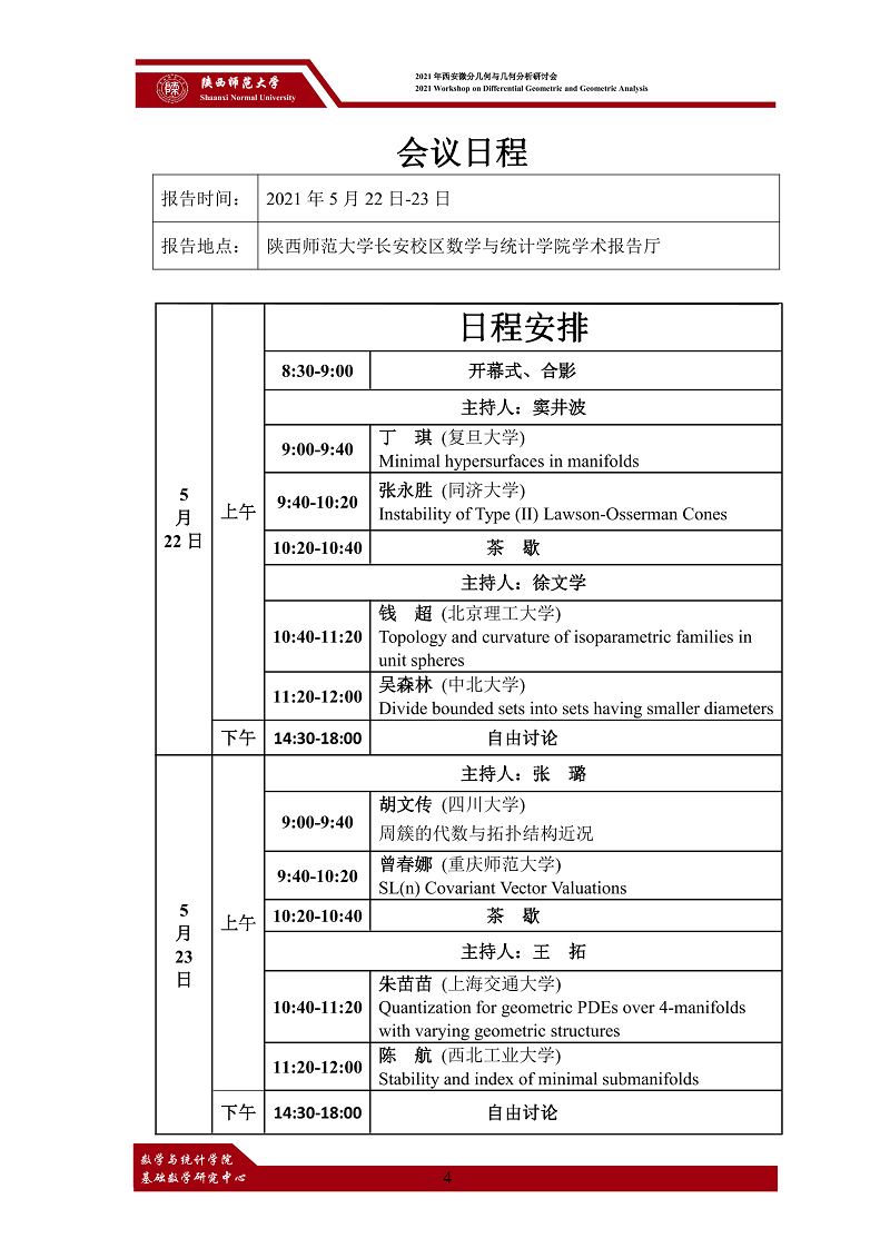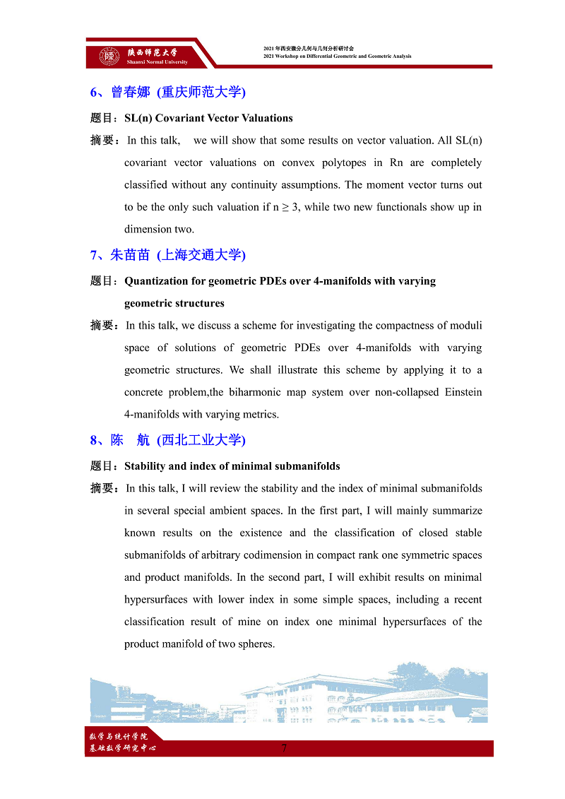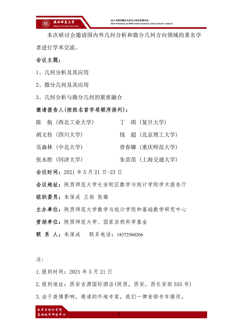 2021年西安微分几何与几何分析研讨会