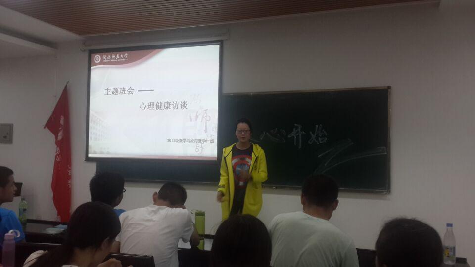 (杜永超报道)2015年5月14日晚七点半2013级应数一班心理健康访谈主题班会在文津楼二层多功能厅成功举办。